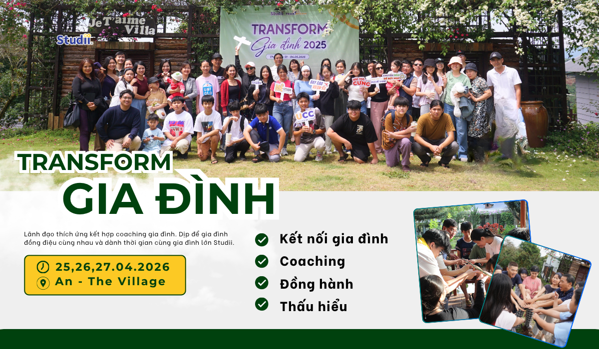 Transform Gia Đình được Studii thiết kế như một không gian trải nghiệm chuyên sâu, nơi các gia đình cùng bước ra khỏi guồng quay thường nhật để: